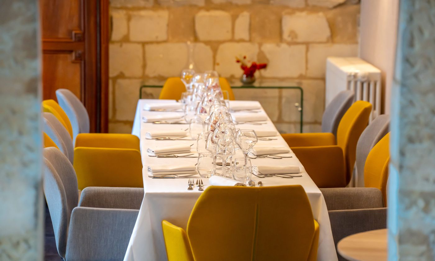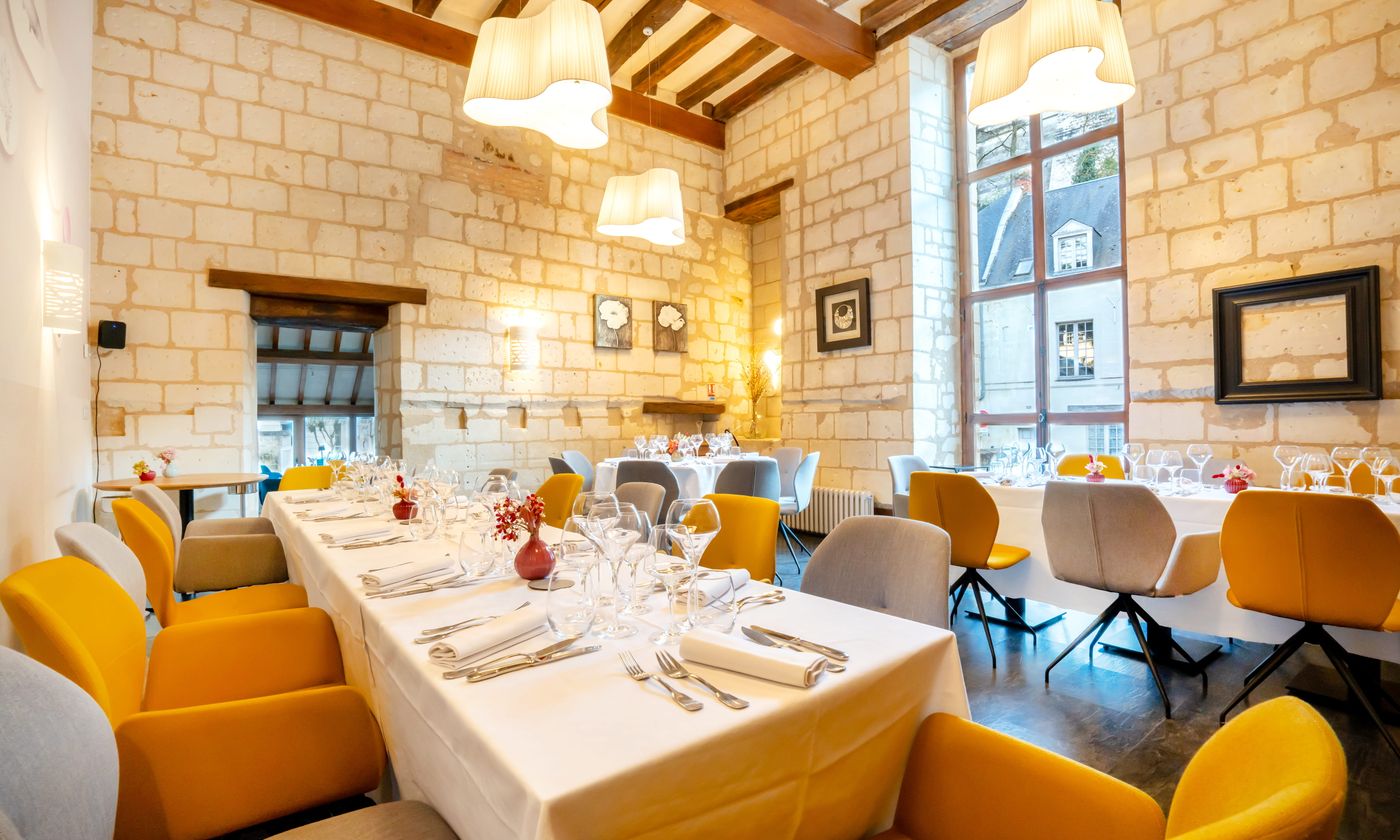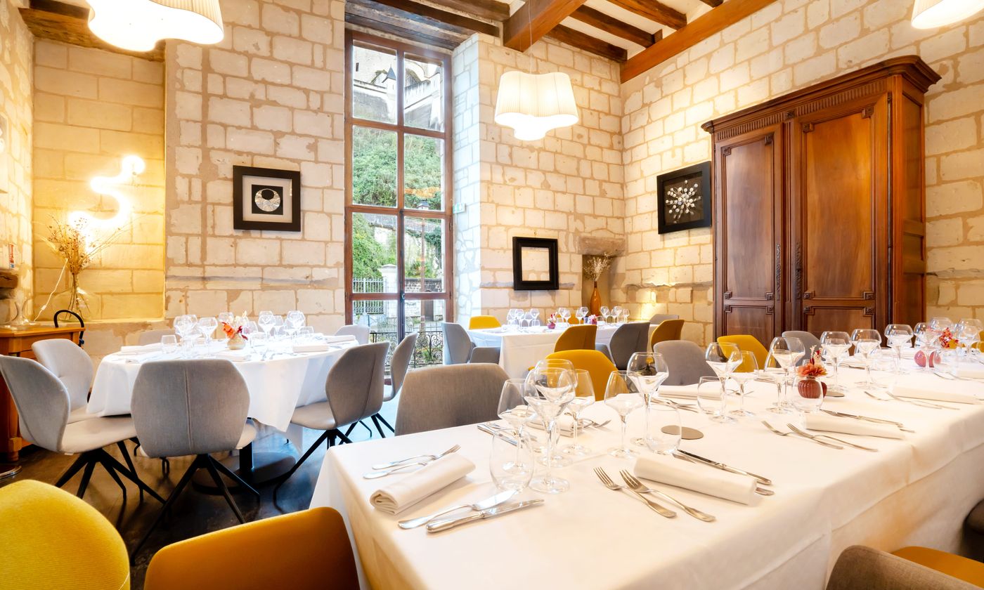 Notre salle Tuffeau! un lieu idéal pour des réunions d'affaires, des séminaires, des formations ou des conférences. Elle est équipée de wifi et d'une TV avec cable HDMI. Elle dispose d'un accès extèrieur lui offrant la lumière du jour. Notre salle de dégustation visible depuis celle ci, lui donne un atout supplementaire, vous pourrez ponctuer votre séminaire par une dégustation avant de découvrir nos mets dans notre salle principale. Nous nous adapterons a vos demandes afin de vous realiser un devis sur mesure.