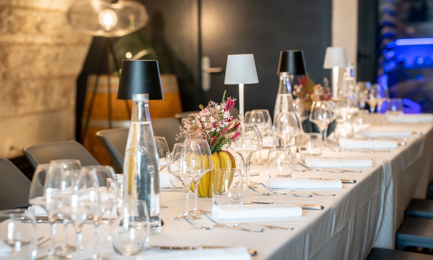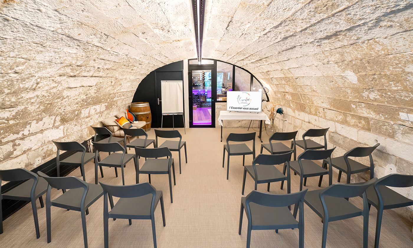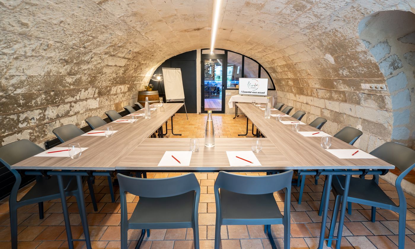 Notre salle Tuffeau! un lieu idéal pour des réunions d'affaires, des séminaires, des formations ou des conférences. Elle est équipée de wifi et d'une TV avec cable HDMI. Elle dispose d'un accès extèrieur lui offrant la lumière du jour. Notre salle de dégustation visible depuis celle ci, lui donne un atout supplementaire, vous pourrez ponctuer votre séminaire par une dégustation avant de découvrir nos mets dans notre salle principale. Nous nous adapterons a vos demandes afin de vous realiser un devis sur mesure.